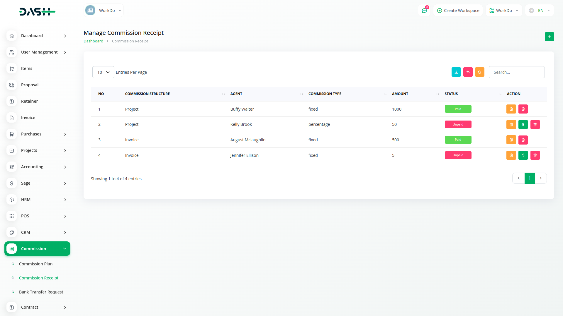 In Commission Module, Commission calculation is about Invoice, Sales Invoice, Project , project and task, agent will get his Commission when payment is made, bank transfer payment in Commission module. When the payment is made, the bank shows its entry in the transfer request so that it knows how much commission is paid.