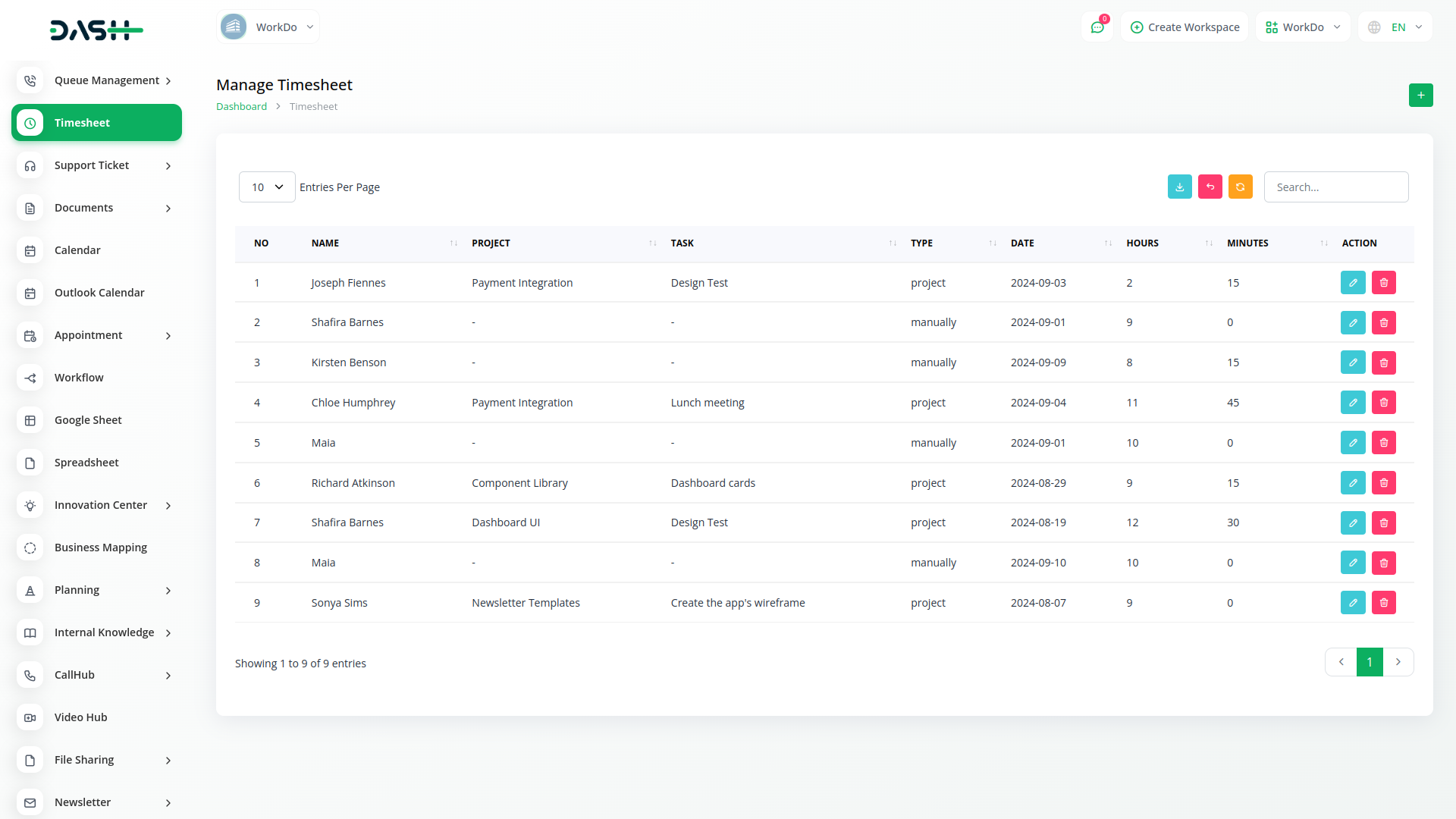 Project Timesheet